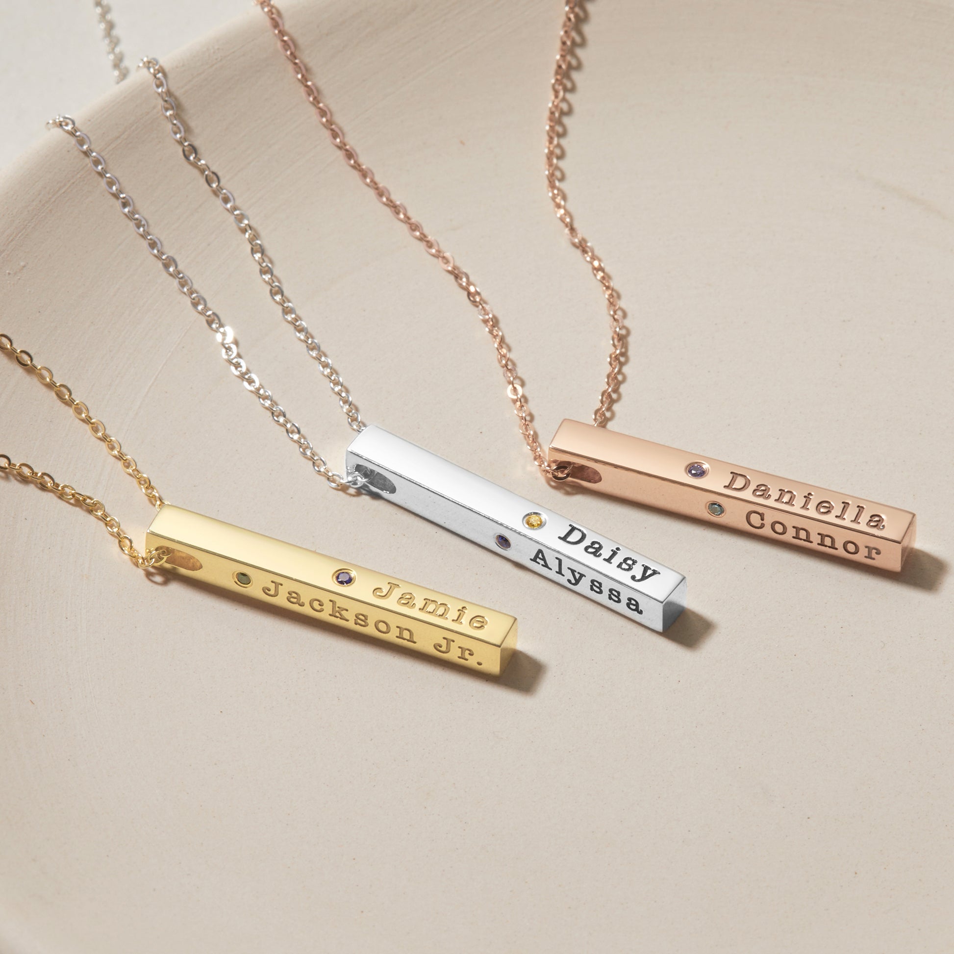 Mom Necklace With Kids Names, Mother Jewelry, 4 Sided Bar Necklace